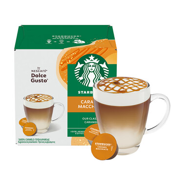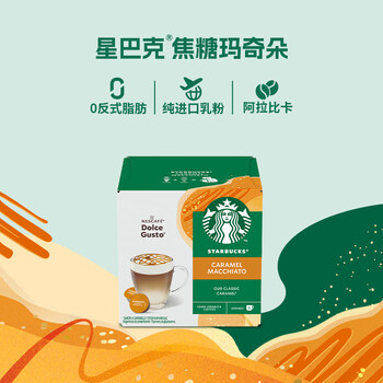 星巴克(Starbucks) 胶囊咖啡 焦糖风味玛奇朵花式咖啡(雀巢多趣酷思咖啡机适用)内含12颗胶囊可做6杯 新老包装随机发