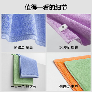 最生活密封毛巾纯棉轻柔3条装 新疆长绒棉A类毛巾吸水洗脸巾 蓝/紫/橘