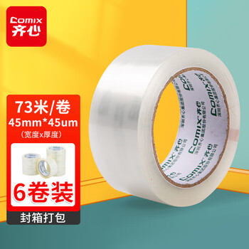齐心(COMIX)(Comix)透明胶带/宽胶带/封箱胶带 快递打包胶带透明 6卷 宽45mm*80y*45um长73米/卷 JP4508-6