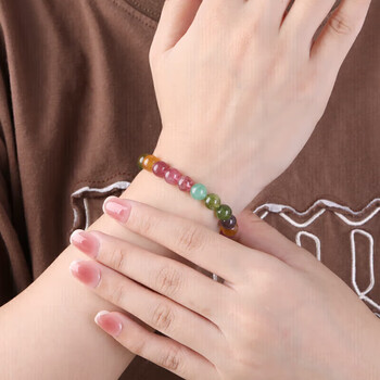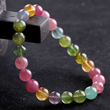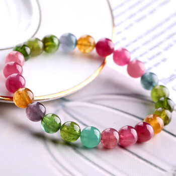 石玥珠宝收藏级7-8mm彩虹碧玺手串转运珠天然水晶手链男女士款 水晶玛瑙