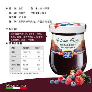 意大利进口 曼莎(MENZ&GASSER)森林果酱340g*1瓶