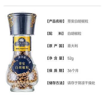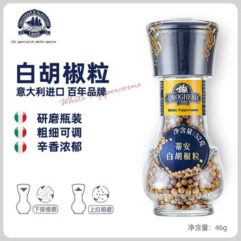 蒂安D&A 白胡椒粒 研磨瓶52g/瓶 意大利进口 西餐牛排意面烧烤调味料