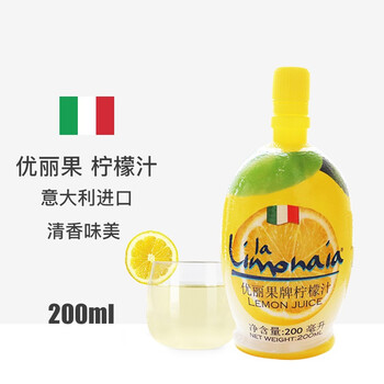 优丽果意大利进口柠檬汁200ml 含维生素C烘培蛋糕冲饮去腥调酒调味汁