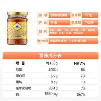 水妈妈泰国原装进口 黄咖喱酱 泰国咖喱膏咖喱鸡 牛肉咖喱饭咖喱面 227g