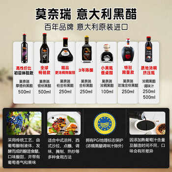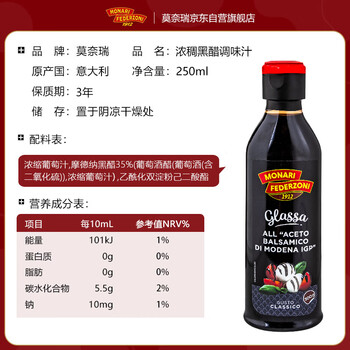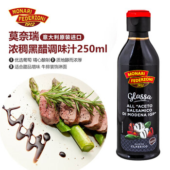 莫奈瑞浓稠黑醋调味汁250ml【意大利进口】果醋香醋沙拉凉拌牛排披萨