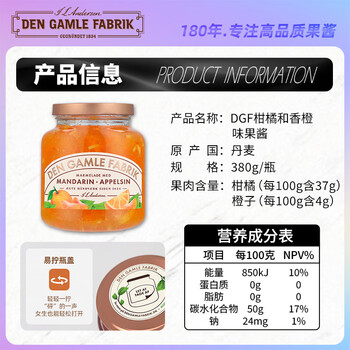 DGF果酱 柑橘橙子混合果肉果酱380g*1