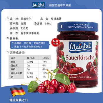 美茵塔尔德国进口无添加樱桃酱340g早餐伴侣0脂肪