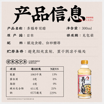 多福日本进口 寿司醋 300ml 日式寿司手卷包饭手握饭团米醋调味料