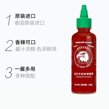 红飞鹰 泰国进口 低脂sriracha是拉差辣椒酱 拌面炒年糕酱火锅蘸酱280g