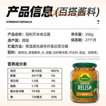 冠利(KUHNE)芥末青瓜蓉汉堡酱350g进口酸黄瓜酱轻食三明治专用轻脂汉堡酱料