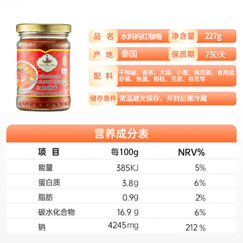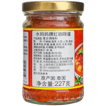 水妈妈 泰国进口红咖喱酱 泰式红咖喱膏 咖喱饭泰国菜椰浆调味料 227g