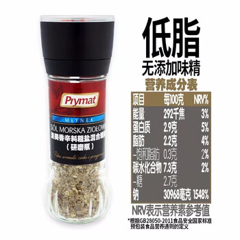 Prymat 波兰进口 波美香辛料海盐调味料80g 研磨瓶重复使用低脂罗勒粗盐