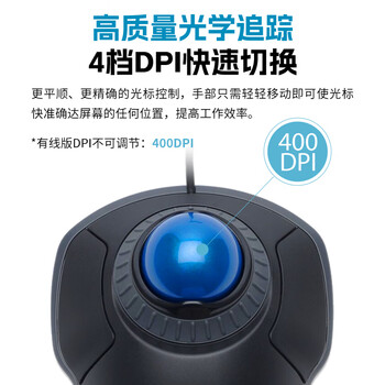 肯辛通(Kensington)轨迹球 人体工学鼠标 家用办公设计 PS制图鼠标带控制环 适用于华硕联想惠普苹果 黑配蓝 K72337
