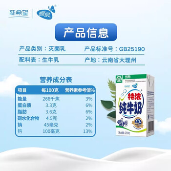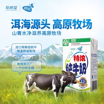 蝶泉新希望特浓纯牛奶250g*24盒整箱 绿色食品3.3g原生乳蛋白 早餐奶
