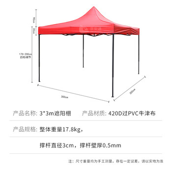 京安通 雨棚遮阳棚 户外加厚遮阳折叠式四脚太阳伞停车棚 3*3m红色