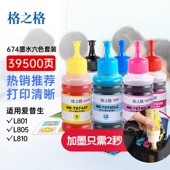格之格T674墨水 适用爱普生墨水L801 L805 L810 L850 L1800墨仓式打印机墨盒T674套装