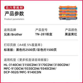 玖六零TN-281粉盒适用兄弟3150cdn粉盒HL3170CDW DCP9020 9140 hl3150cdn打印机墨盒HL-3140 MFC9130 9330 9340硒鼓