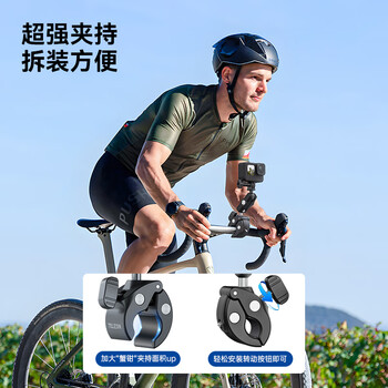 TELESIN(泰迅)适配大疆action4 5pro摩托车支架适用gopro自行车支架insta360车管夹运动相机骑行支架配件