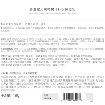 养生堂天然桦树汁补水保湿乳120g舒润呵护滋润护肤乳液新年礼物送男女生