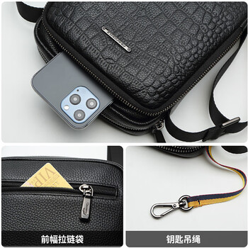 鳄鱼恤青年头层牛皮鳄鱼纹单肩包男士小包潮流斜挎男包送男友T1623