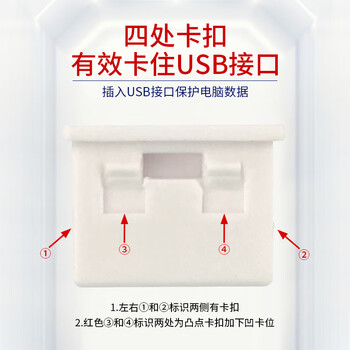 索厉 USB口不可逆款封堵锁封住U口防尘塞封堵器不可拆卸安全锁 硬塑料材质 内嵌式设计 白色10装 PWU10