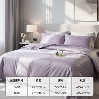 源生活 100支长绒棉四件套 全棉双股贡缎床上用品 纯色床单被套枕套1.5米床 豆沙紫