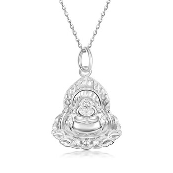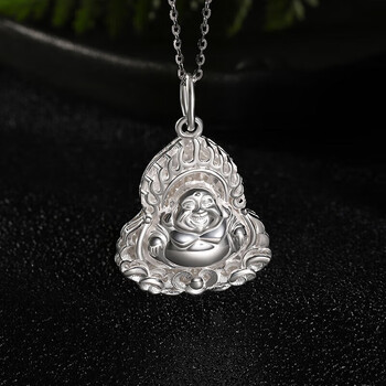 梦金园银吊坠足银990火焰佛挂坠弥勒佛坠子女款不含项链