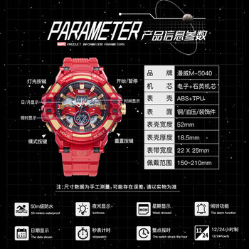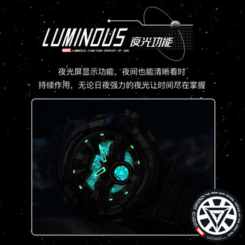 漫威(Marvel)钢铁侠系列运动电子表多功能防水手表初高中学生儿童生日礼物开学
