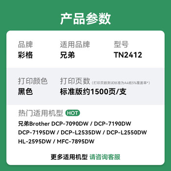 彩格TN2412粉盒适用兄弟DCP-7190DW 7090DW打印机墨盒 L2550dw L2535dw碳粉盒 7195dw 7895dw打印机硒鼓粉盒1支