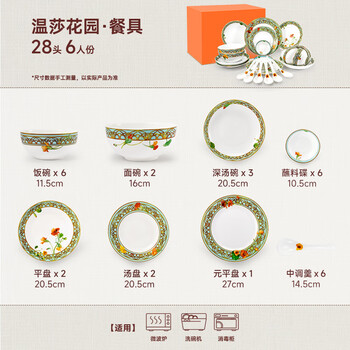 玛戈隆特28头骨瓷餐具套组碗碟套装礼盒轻奢家用餐具温莎花园6人份