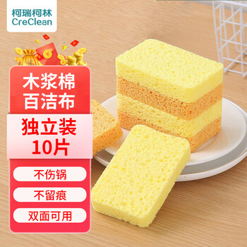 柯瑞柯林 黄色海绵百洁布厨房刷碗刷锅海绵擦双面可用独立装WPC10 10片装