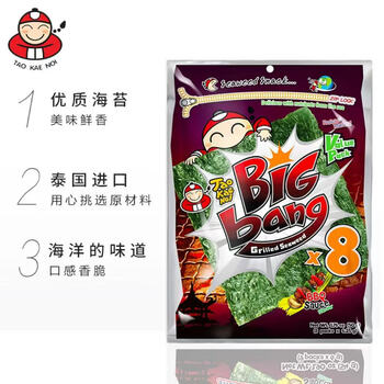 老板仔泰国进口 烤海苔大片海苔 香脆紫菜烤海苔 烧烤味50g
