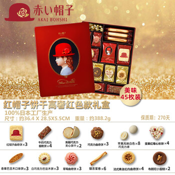 红帽子曲奇饼干388.2g红色礼盒45枚原装进口节日送礼企业福利零食