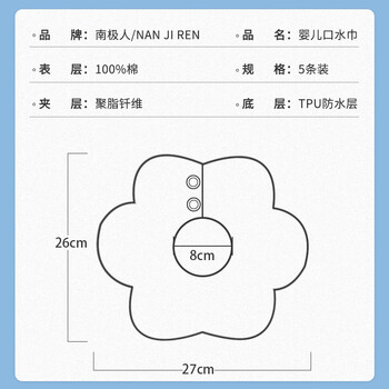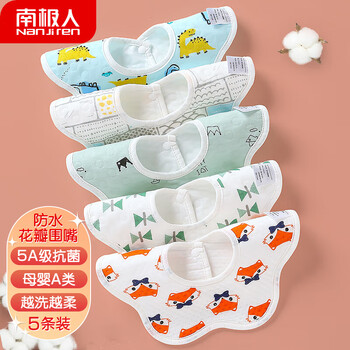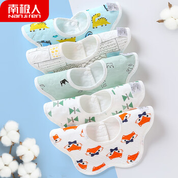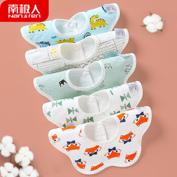南极人(Nanjiren)5条装婴儿口水巾新生儿360度旋转防水围嘴吐奶垫巾围兜儿童饭兜