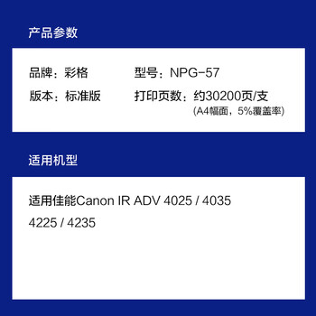 彩格适用佳能NPG-57粉盒 IR ADV 4025碳粉盒 4035复印机墨盒 4225复合机墨粉 4235碳粉墨粉盒