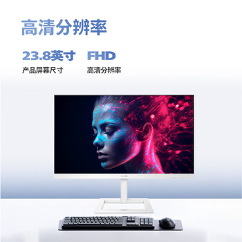 飞利浦 23.8英寸IPS Type-C投屏75hz 升降支架可壁挂 游戏模式 办公电脑显示器 拼接显示屏 白色243E1EW