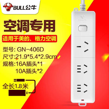公牛(BULL)GN-406D 新国标3插位 总控 大功率16A 插板插座插排 3米线