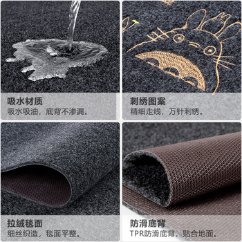 quatrefoil家用刺绣入户门地垫防滑吸水可剪裁 龙猫灰色40*60cm