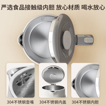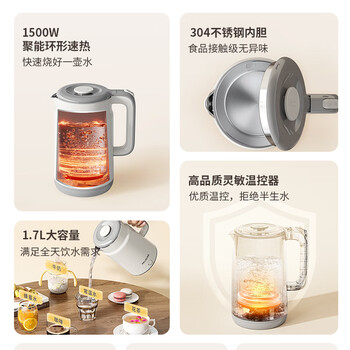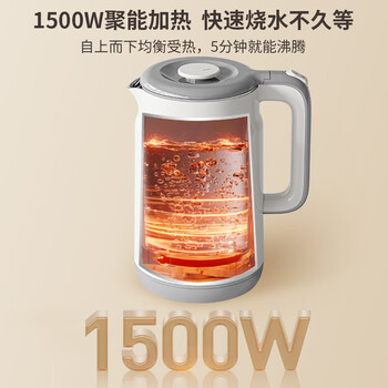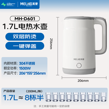 美菱(MeiLing)烧水壶电水壶热水壶电热水壶家用双层防烫1.7L大容量内胆304不锈钢MH-D601