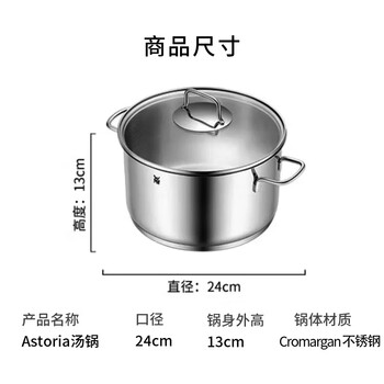 WMF德国福腾宝不锈钢汤锅炖锅汤锅煮锅保鲜Astoria汤锅24cm厨房好物