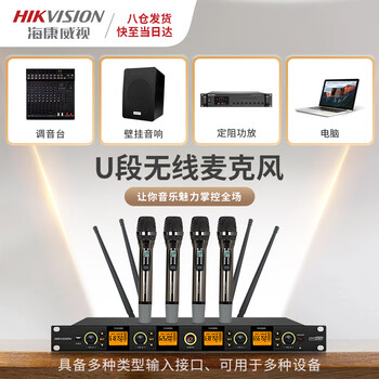海康威视(HIKVISION)手持一拖四无线麦克风UHF话筒无障碍百米传输防啸叫专业舞台唱歌家用会议演讲培训广播婚庆晚会KTV