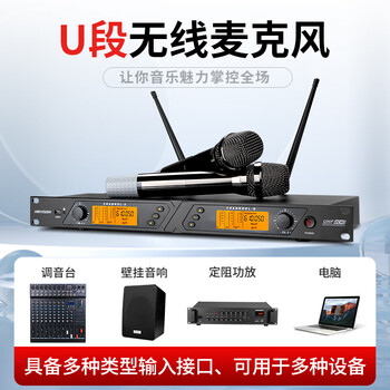 海康威视(HIKVISION)手持一拖二无线麦克风专业会议演讲UHF直播话筒百米传输防啸叫舞台唱歌家用主持培训婚庆晚会KTV