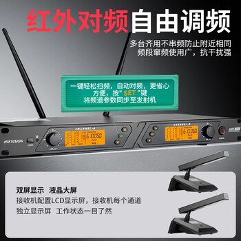 海康威视(HIKVISION)会议一拖二无线麦克风桌面短杆方管话筒主席台UHF高保真抗干扰自动对频防啸叫演讲培训广播