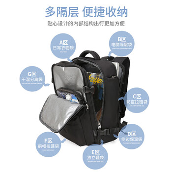 Landcase 背包旅行包女超大容量双肩包男行李包多功能电脑包5162黑色大号