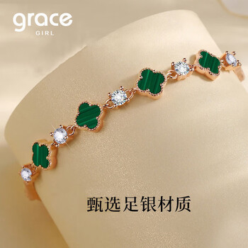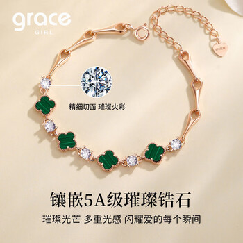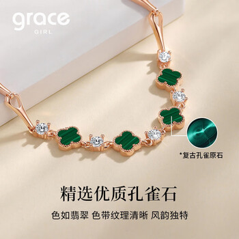 Grace Girl孔雀宝石四叶草手链女玫金色珠宝首饰实用纪念日生日礼物送女友
