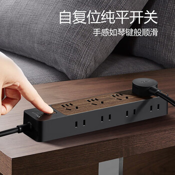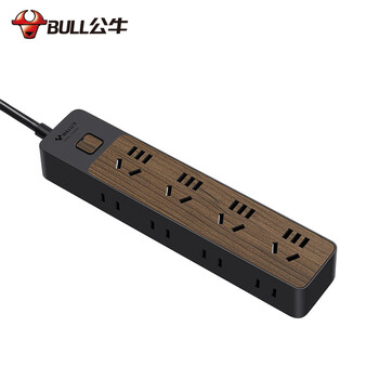 公牛(BULL)插座/插线板/插排/排插/接线板/拖线板 8位总控1.8米 黑色木纹GN-R1440