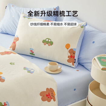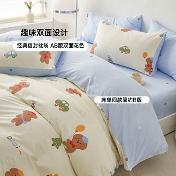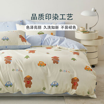 多喜爱家纺全棉床上三件套 学生宿舍单人被套床单纯棉套件1.2床152*218cm