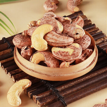 老街口盐焗紫皮腰果500g 坚果休闲零食特大带皮腰果仁1斤罐装炒货干果
