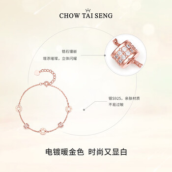 周大生【生日礼物】小蛮腰手链轻奢玫瑰金银手链生日礼物送女友老婆