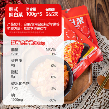 云山半韩式辣白菜泡菜100g*5袋 韩国风味香辣白菜即食下饭菜咸菜酱菜